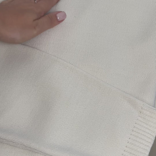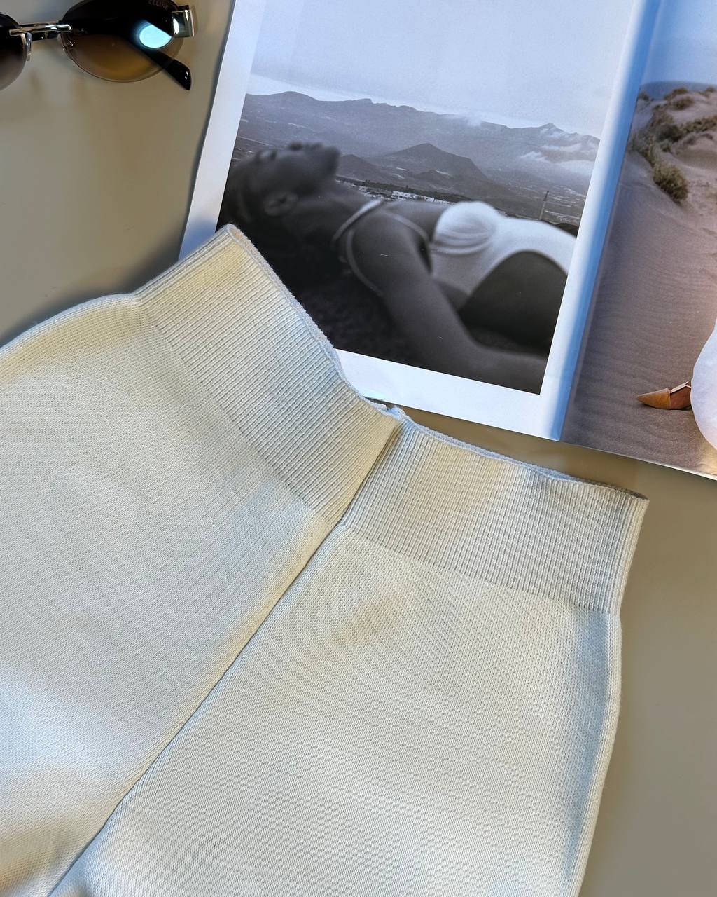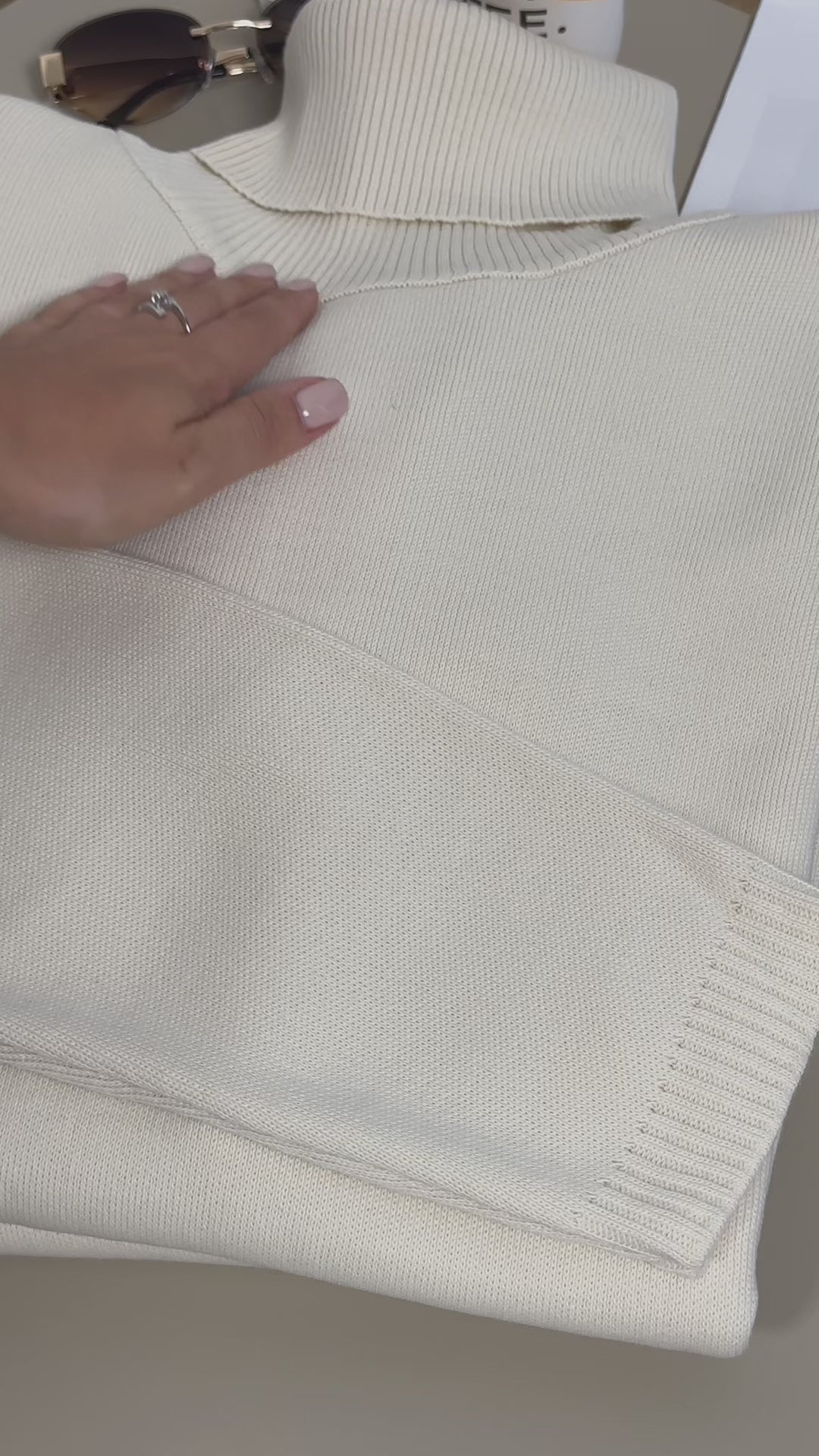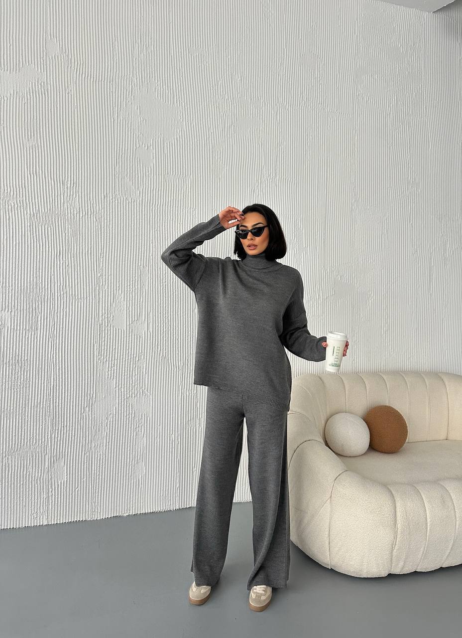 Descriere: Costum tricotat moale, format dintr-un pulover lejer cu guler înalt și pantaloni largi. O alegere ideală pentru o ținută confortabilă de zi cu zi