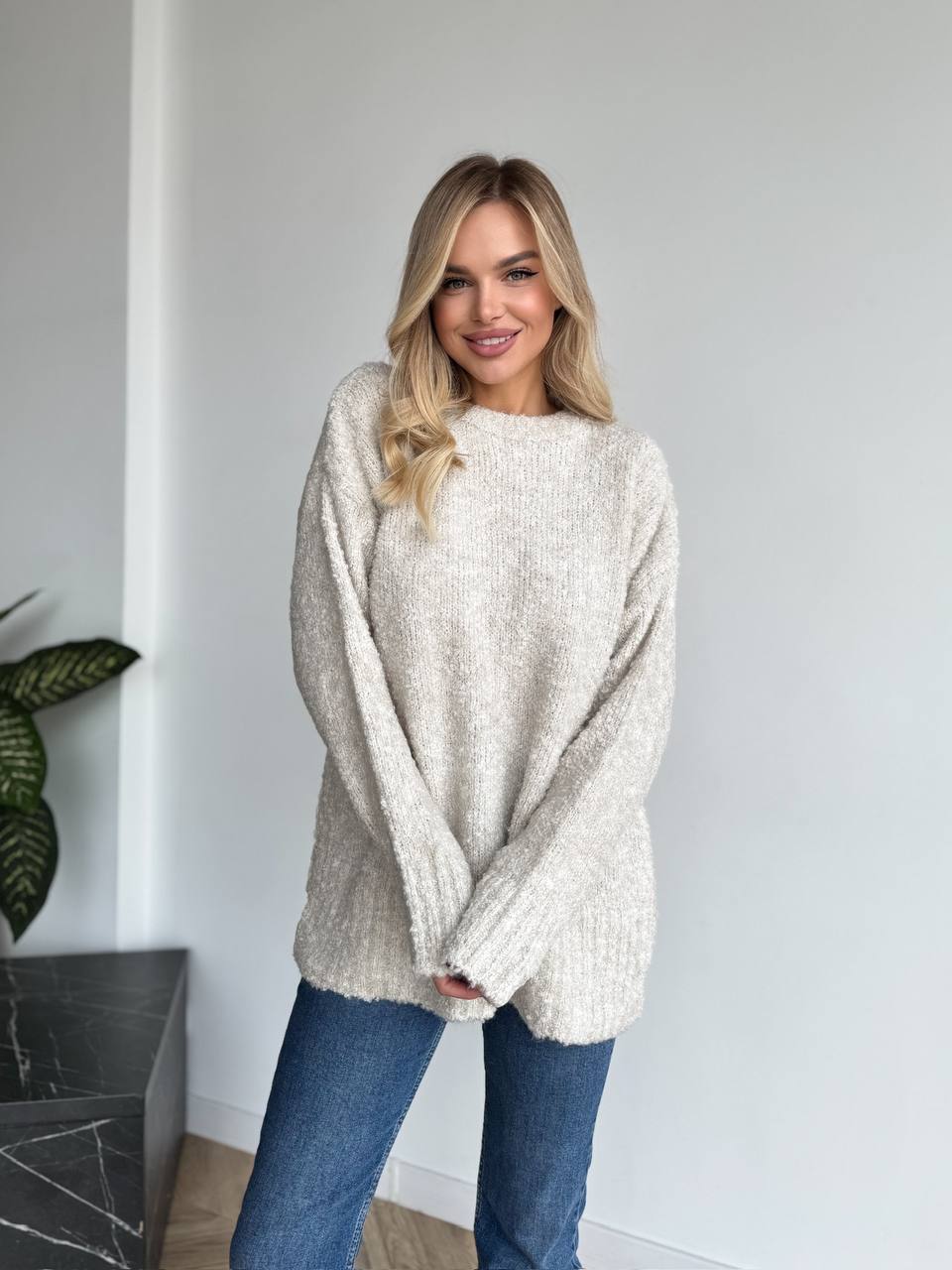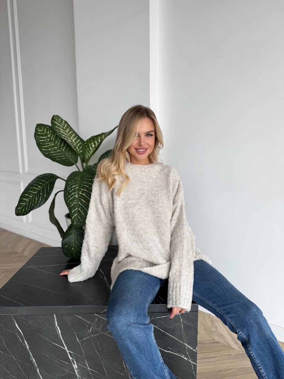 Descriere: Pulover tricotat voluminos, cu textură moale și croială lejeră. Ideal pentru ținutele confortabile în stil casual