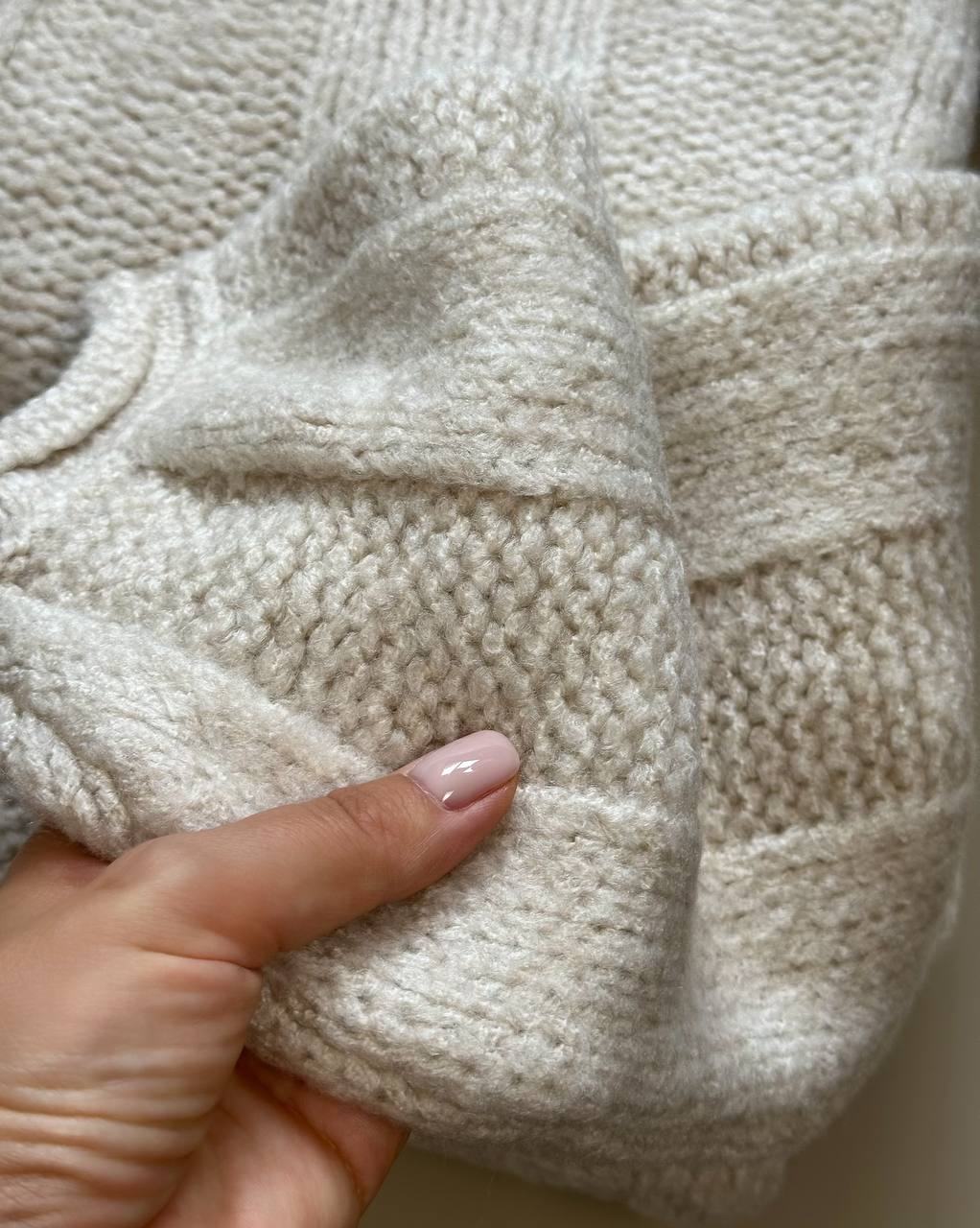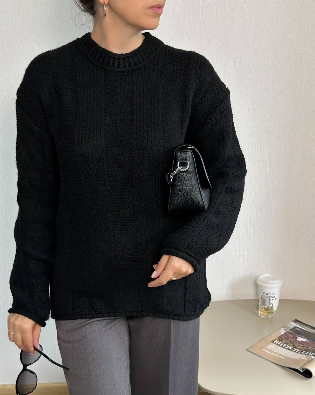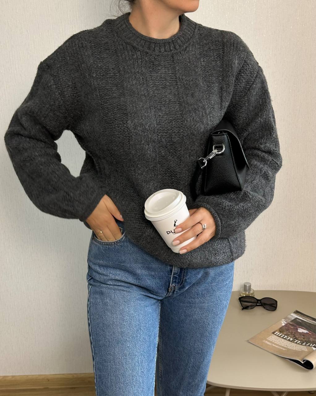 Descriere: Pulover tricotat de bază, cu croială lejeră și textură în relief. Ideal pentru ținutele de zi cu zi.
